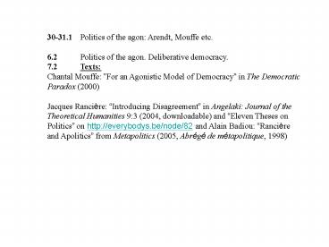Title: 3031'1Politics of the agon: Arendt, Mouffe etc'