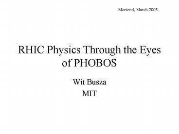 Title: RHIC Physics Through the Eyes of PHOBOS