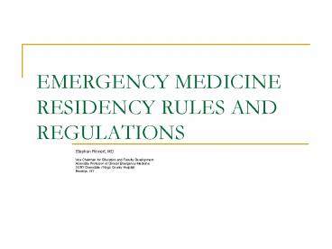 Title: EMERGENCY MEDICINE RESIDENCY RULES AND REGULATIONS