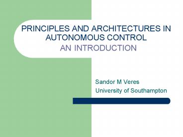 Title: PRINCIPLES AND ARCHITECTURES IN AUTONOMOUS CONTROL AN INTRODUCTION