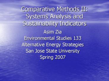 Title: Comparative Methods II: Systems Analysis and Sustainability Indicators