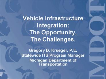 <Notice: Removed> Vehicle Infrastructure Integration: The Opportunity, The Challenges. PowerPoint PPT Presentation