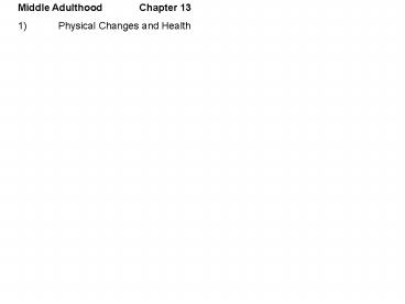 1Middle Adulthood Chapter 13 1) Physical Changes