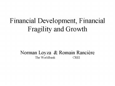Loayza and Levine (2000) - Lending boom, banking crisis and growth slowdown.