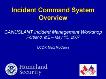Title: Incident Command System Overview CANUSLANT Incident Management Workshop Portland, ME