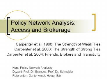<Notice: Removed> Policy Network Analysis: Access and Brokerage PowerPoint PPT Presentation