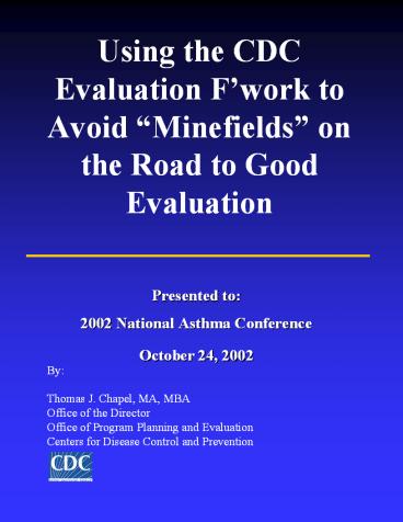 1Using the CDC Evaluation Fwork to Avoid