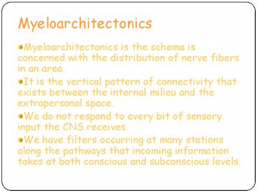 - Myeloarchitectonics is the schema is concerned