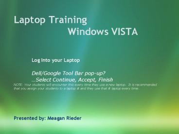 Laptop Training Windows VISTA PowerPoint PPT Presentation