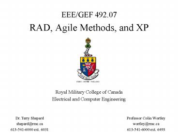 Title: EEEGEF 492'07 RAD, Agile Methods, and XP