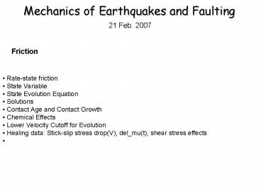 Title: Mechanics of Earthquakes and Faulting