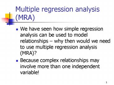 1Multiple regression analysis (MRA)