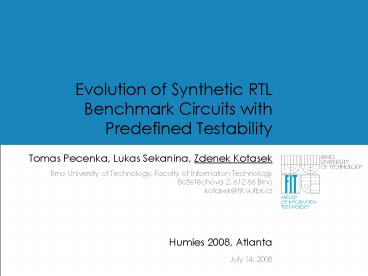 calculated (quadratic time complexity). - Testability of evolved circuits is validated