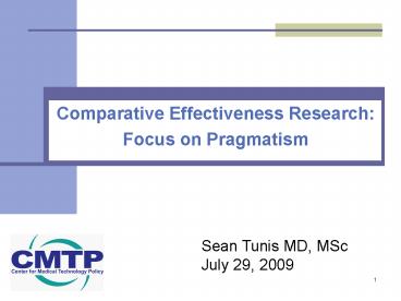 Sean Tunis MD, MSc July 29, 2009