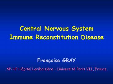 Title: Central Nervous System Immune Reconstitution Disease