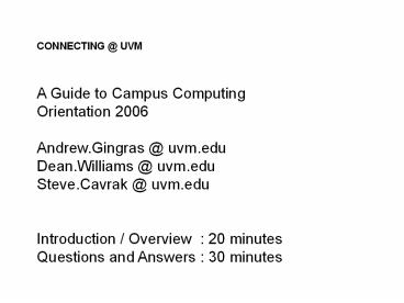 uvm.edu Steve.Cavrak _at_ uvm.edu Introduction /