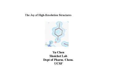 1 Yu Chen Shoichet Lab Dept of Pharm. Chem. UCSF