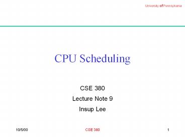 <Notice: Removed> CPU Scheduling PowerPoint PPT Presentation