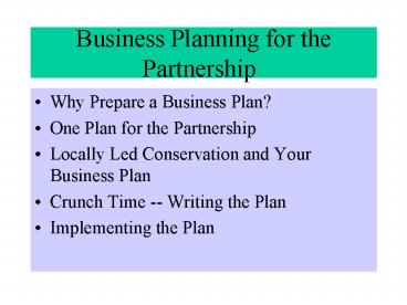 Title: Business Planning for the Partnership