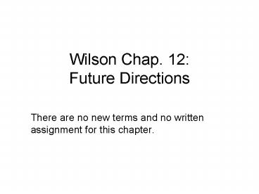 Wilson Chap' 12: Future Directions PowerPoint PPT Presentation