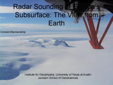 Title: Radar Sounding of Europas Subsurface: The View from Earth