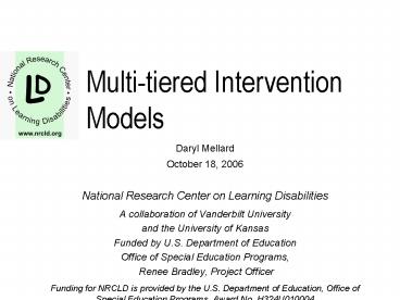 Title: Multitiered Intervention Models