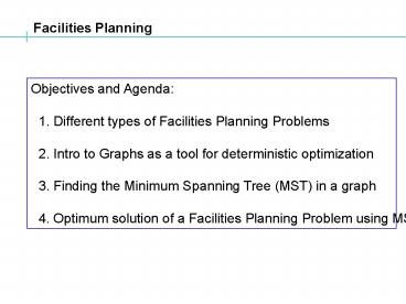 Facilities Planning Problems 2. Intro to