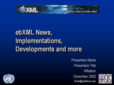 http//www.ebxml.org - Infrastructure work continuing at OASIS