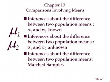 population means ?1 and ?2 unknown - Inferences about the difference between two