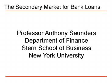 influence bank specialness? - Hypothesis 1 A secondary market for loans ? bank