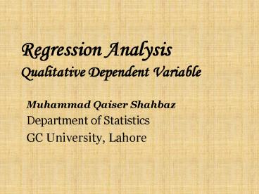Title: Regression Analysis Qualitative Dependent Variable
