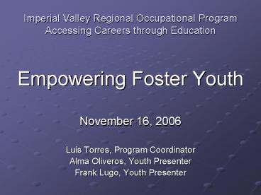Title: Imperial Valley Regional Occupational Program Accessing Careers through Education