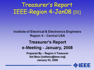 Treasurers ReportIEEE-Region 4-Jan08 01