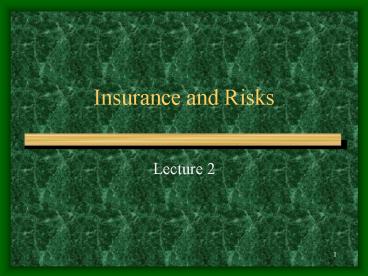 Insurance and Risks PowerPoint PPT Presentation