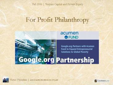 Title: For Profit Philanthropy