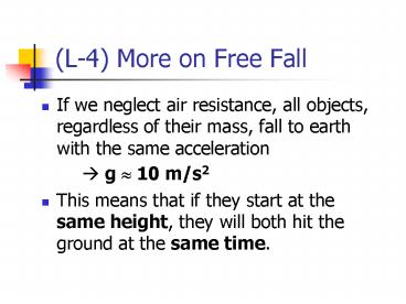 Title: (L-4) More on Free Fall