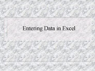 <Notice: Removed> Entering Data in Excel PowerPoint PPT Presentation