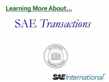 is included in SAE Transactions. - He/she considers the recommendations of both the