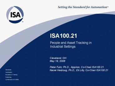 Apprion, Co-Chair ISA100.21 Nacer Hedroug, Ph.D.,