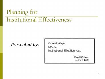 implementation, assessment, and improvement. - Institutional Effectiveness supports