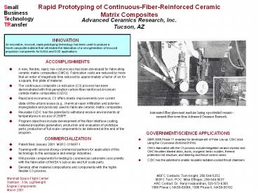 (NASA8-01016). - CMCs fabricated with the C3 process