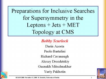 1.5 TeV with 1 fb1, 2.5 TeV with 100 fb1 - Conducting a careful study of SUSY using full CMS