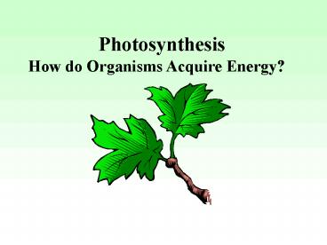 1 Photosynthesis How do Organisms Acquire Energy?