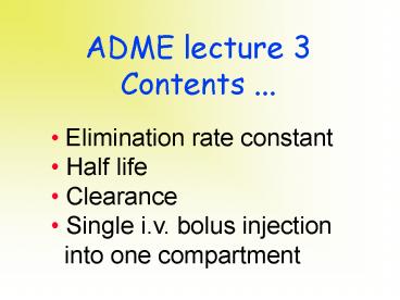 Title: ADME lecture 3 Contents ...