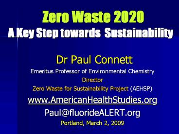 Title: Zero Waste 2020 A Key Step towards Sustainability