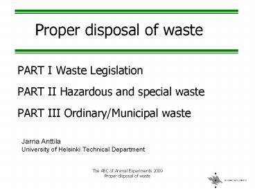 Title: PART I Waste Legislation