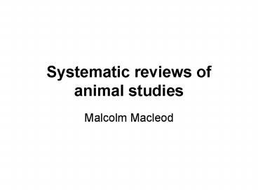Systematic reviews of animal studies PowerPoint PPT Presentation