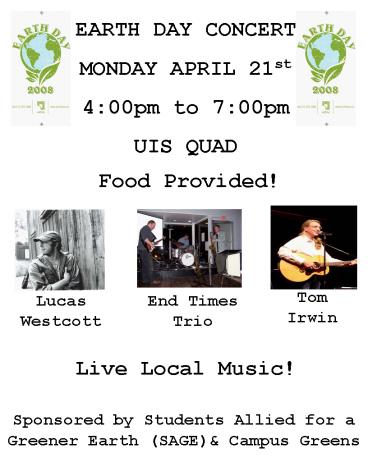 EARTH DAY CONCERT MONDAY APRIL 21st 400pm to