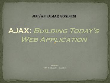 AJAX Building Todays Web Application