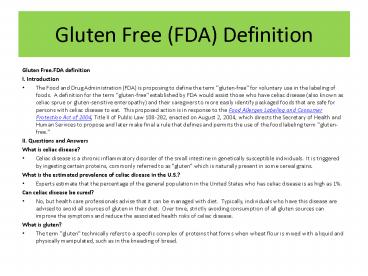 Gluten Free FDA Definition PowerPoint PPT Presentation